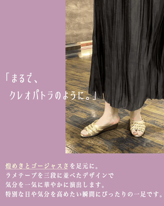 No1708三段ラメテープ飾り合皮生地外履きサンダル