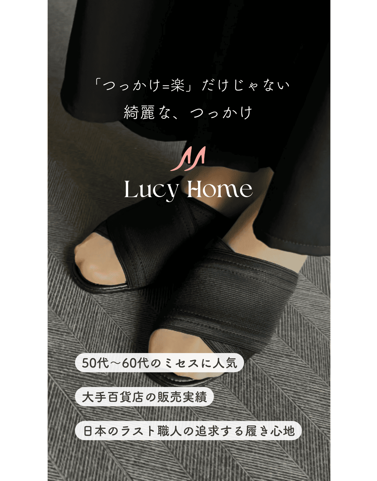楽なだけで良いの?つっかけサンダルにも気品を ―― 50年前、そんなコンセプトから生まれたLucy Homeを象徴するコレクション。