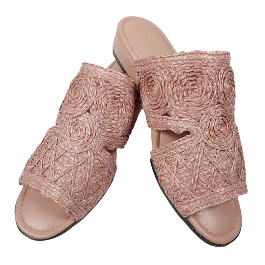 No1754コサージュ飾り付きサテン柄生地外履きサンダル